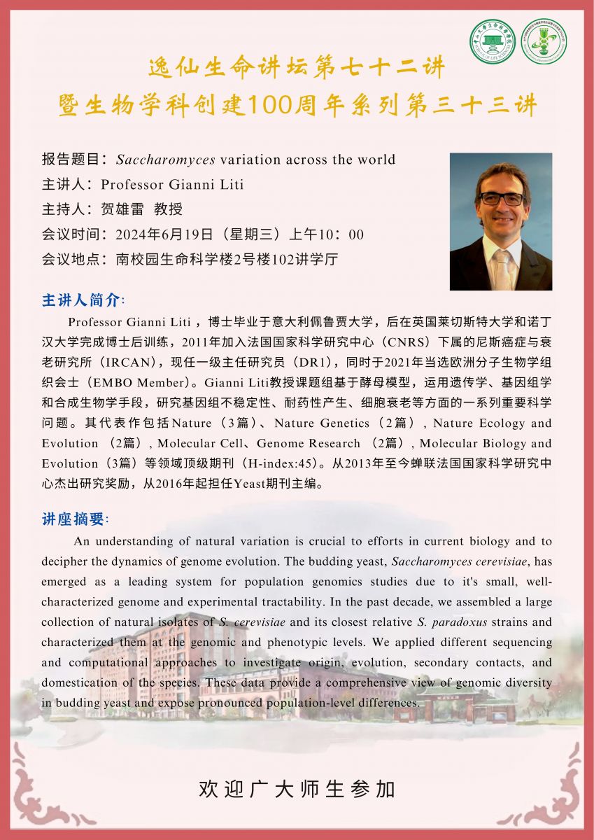 导航痕迹 直播平台 生科百年 系列讲座 生物学科创建100周年系列第三十三讲:世界范围内酵母的变异 扫描此二维码分享 生物学科创建100周年系列第三十三讲:世界范围内酵母的变异 发布人:涂佳玲 发布日期:2024-07-03