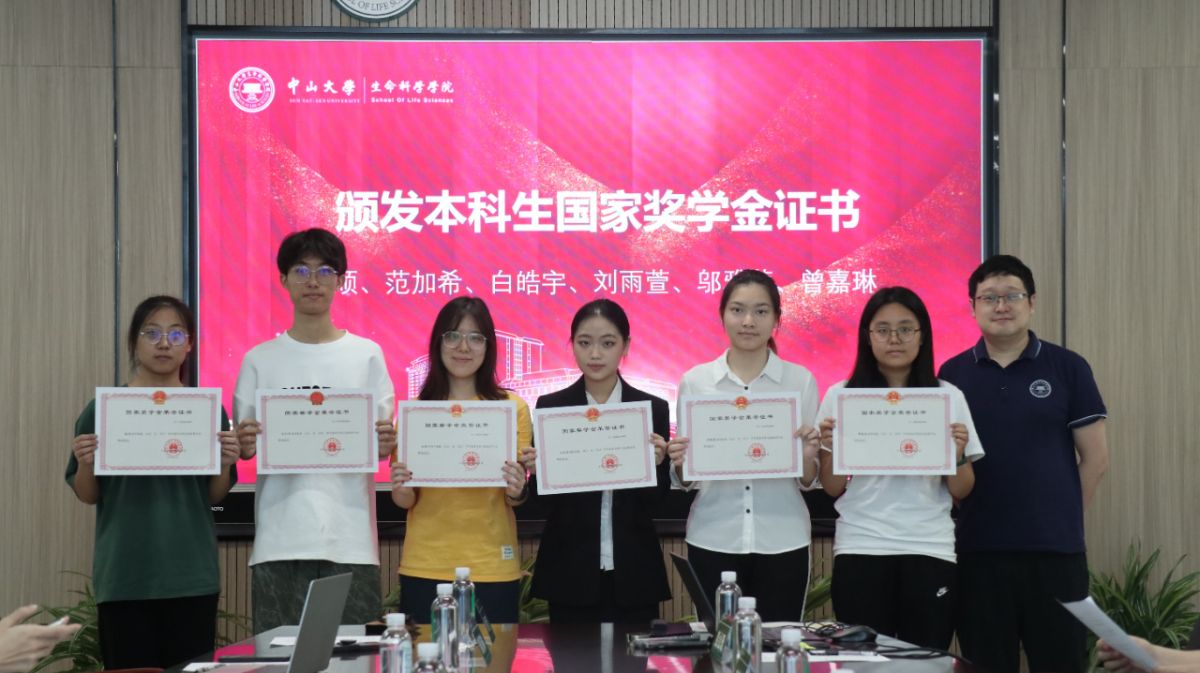 接下来,张斯虹书记和邝栋明副院长为向佼、夏雨、马思睿、邓绮琪、周帅熹、刘鼎瑞、欧阳玉婷共七位同学颁发硕士研究生国家奖学金证书,并合影留念。