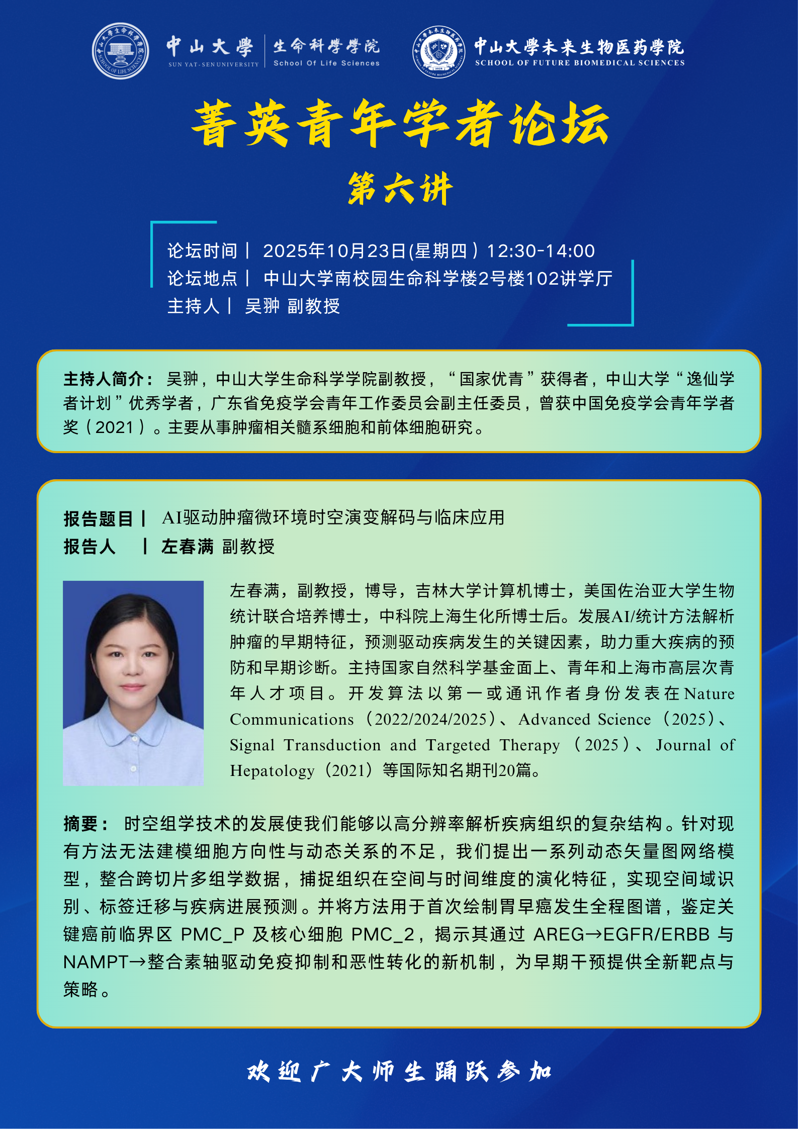 2025年10月23日菁英青年学者论坛第6讲:AI驱动肿瘤微环境时空演变解码与临床应用