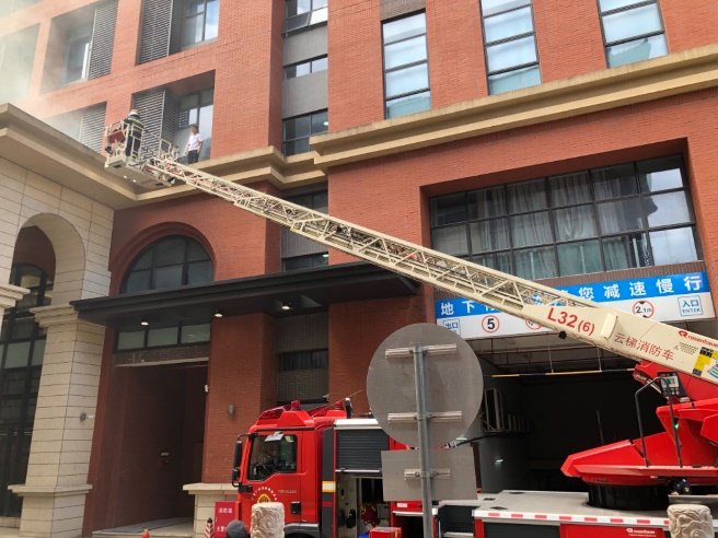 随后,在生命科学楼2号楼301室模拟了一场电器短路火灾。随着警报声响起,物业人员迅速切断电源,电梯停运。师生们迅速反应,报警并尝试扑灭初起火源。救援人员迅速赶到现场,评估火势后启动紧急疏散预案。各楼层人员有序撤离至一楼集合点,完成人数清点。同时,保卫处志愿消防队员对楼层进行搜救和灭火作业,利用消防云梯成功救援被困学生。整个演练过程高效有序,有效检验了师生的应急处理能力。